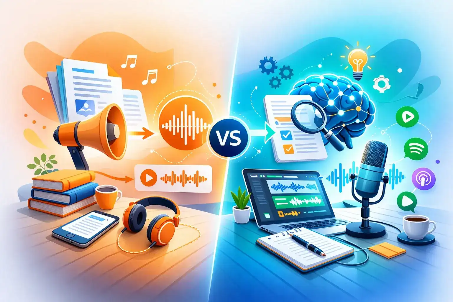 TurboCast and Speechify take different approaches to audio content. Compare AI podcast generation vs text-to-speech reading to find which tool fits your needs.