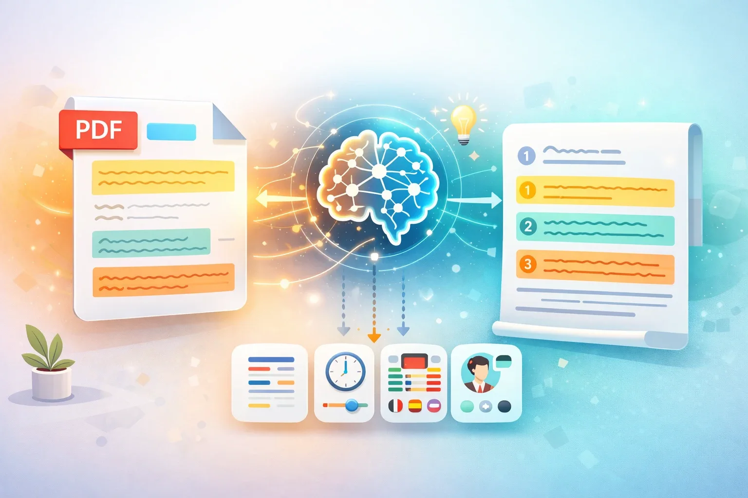 Mais il y a un gouffre entre un outil qui lit robotiquement votre PDF mot à mot et un outil qui comprend réellement le contenu et produit une explication captivante au style podcast. Ce guide couvre les deux approches et vous montre exactement comment tirer le meilleur parti de la conversion assistée par IA.