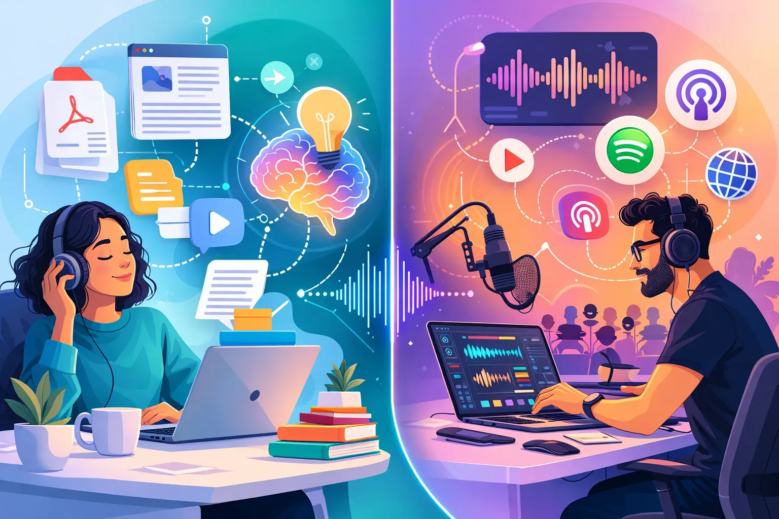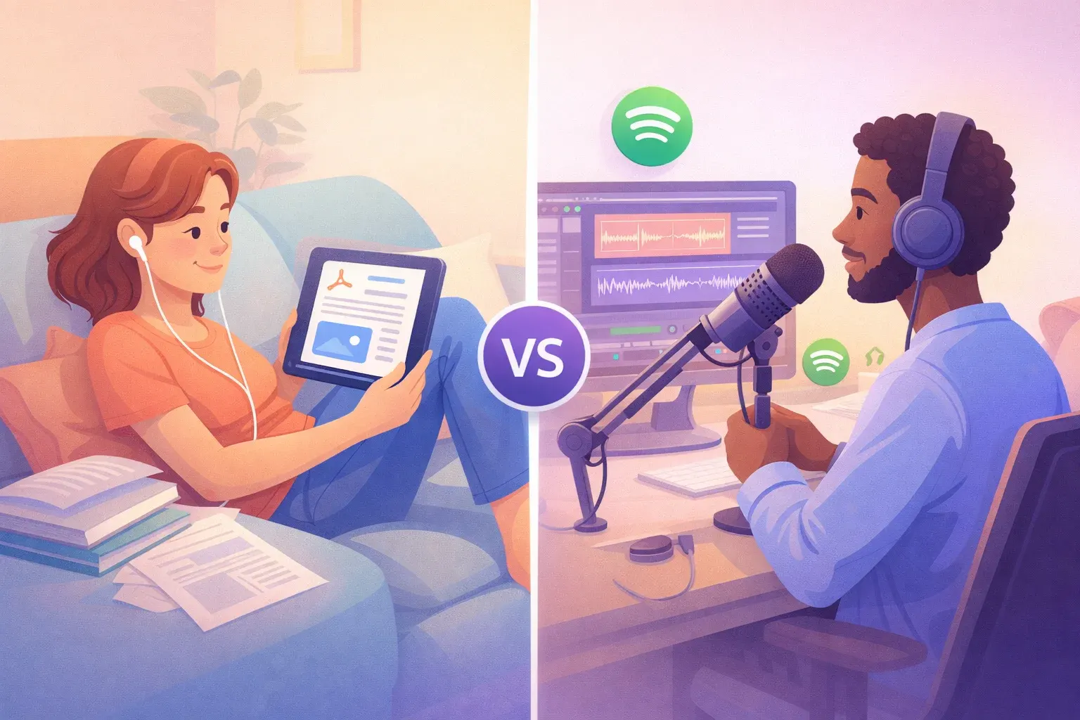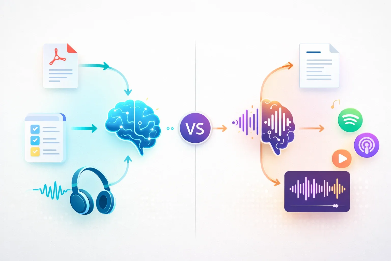 AI 팟캐스트 도구는 두 가지 뚜렷한 진영으로 나뉘었습니다: 프로그램 제작을 위한 플랫폼과 콘텐츠를 학습용 오디오로 변환하는 도구입니다. TurboCast와 Wondercraft 모두 AI를 사용하여 팟캐스트 스타일 오디오를 만들지만 — 완전히 다른 사용자를 위해, 완전히 다른 이유로 만듭니다.
